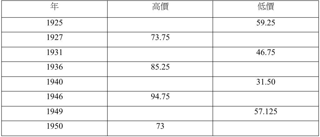 過去50年中,普通股價格波動幅度很大。然而,除了1927年至1933年的這段時期,價格波動似乎都符合至少回溯到南北戰爭時期的模式。奇怪的是,無論是第一次世界大戰還是第二次世界大戰的時期,都沒有特別影響股價走勢。1929年崩潰的著名新時代牛市及其隨之而來的熊市比我們記錄的其他任何時期的情況都要引人注目。但我們的觀點是,這一巨大事件僅代表了一次大規模的投機狂歡 – 就像兩個世紀前的南海泡沫和密西西比泡沫一樣 – 與經濟或政治發展沒有特別的基礎。(但在這種情況下,投機引起了重大的經濟和政治結果)。