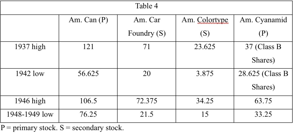 當我們從第一線普通股轉向較不突出且較不牢固的股票時,我們發現價格波動範圍逐漸擴大,對分析師的判斷也越來越重要。表 4 給出了一級和二級普通股價格變動範圍的一些典型範例。
