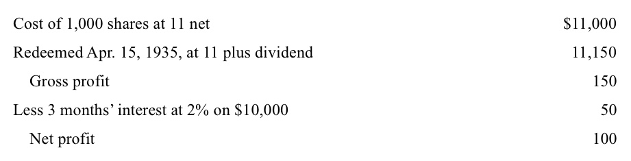不用說,這種不尋常的操作的安全性和由此產生的投資特徵完全源於這樣一個事實:持有人可以絕對指望 1935 年 4 月贖回股票。