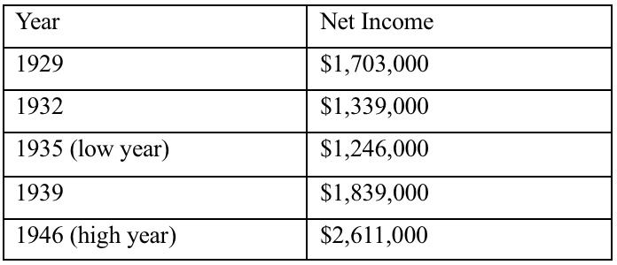 以 1946 年和 1947 年的高價計算,該公司在市場上的售價約為 2,500 萬美元,儘管有形資產淨值和年銷售額僅為約 500 萬美元。